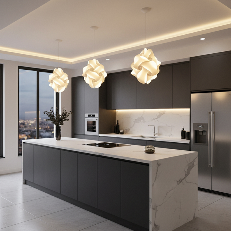 Chaque facette de la Lampe Suspension S016 invite à la contemplation et au bien-être. Ainsi, elle sublime votre décoration intérieure avec une modernité rare. D’abord, nous utilisons du polypropylène translucide pour créer ces formes complexes. Par conséquent, la diffusion lumineuse reste parfaitement homogène dans toute la pièce. Ensuite, sa hauteur de 40 cm offre une présence visuelle forte et luxueuse. De cette manière, elle convient idéalement aux pièces disposant d’un beau volume. En outre, ce luminaire reste très léger et facile à installer. Enfin, sa finition soignée garantit un rendu esthétique impeccable.