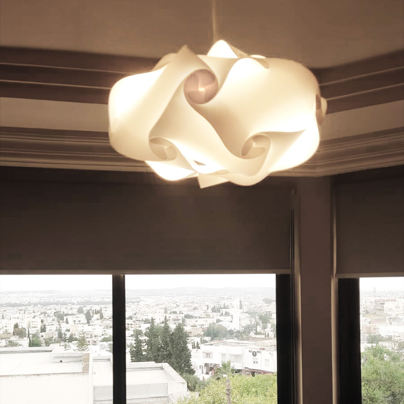 Globalement, nous veillons à la robustesse de chaque suspension produite dans notre atelier. La Lampe Suspension SA15 possède un diamètre de 25 cm pour un équilibre visuel optimal. Certes, le polypropylène est un matériau léger, mais il est aussi très résistant aux épreuves du temps. Toutefois, son entretien reste minimal pour garder sa belle lumière homogène. Actuellement, Habilis Deco livre l’ensemble de ses créations partout en Tunisie. Pour conclure, n’hésitez pas à parcourir nos suspensions Habilis Deco pour d’autres inspirations. En résumé, cette pièce est un véritable souffle de modernité.