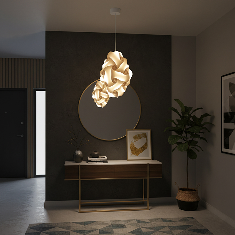 Chaque facette de la Lampe Suspension SA24 invite à la contemplation et au calme. Ainsi, elle sublime votre décoration avec une modernité architecturale affirmée. D’abord, nous utilisons du polypropylène translucide pour garantir une diffusion thermique et lumineuse parfaite. Par conséquent, la lumière est projetée de manière homogène dans toute la pièce. Ensuite, sa hauteur de 40 cm offre une verticalité très élégante. De cette manière, elle devient le point focal de votre salle à manger ou de votre salon. En outre, sa structure est pensée pour durer tout en restant légère. Enfin, son entretien est simple et rapide.